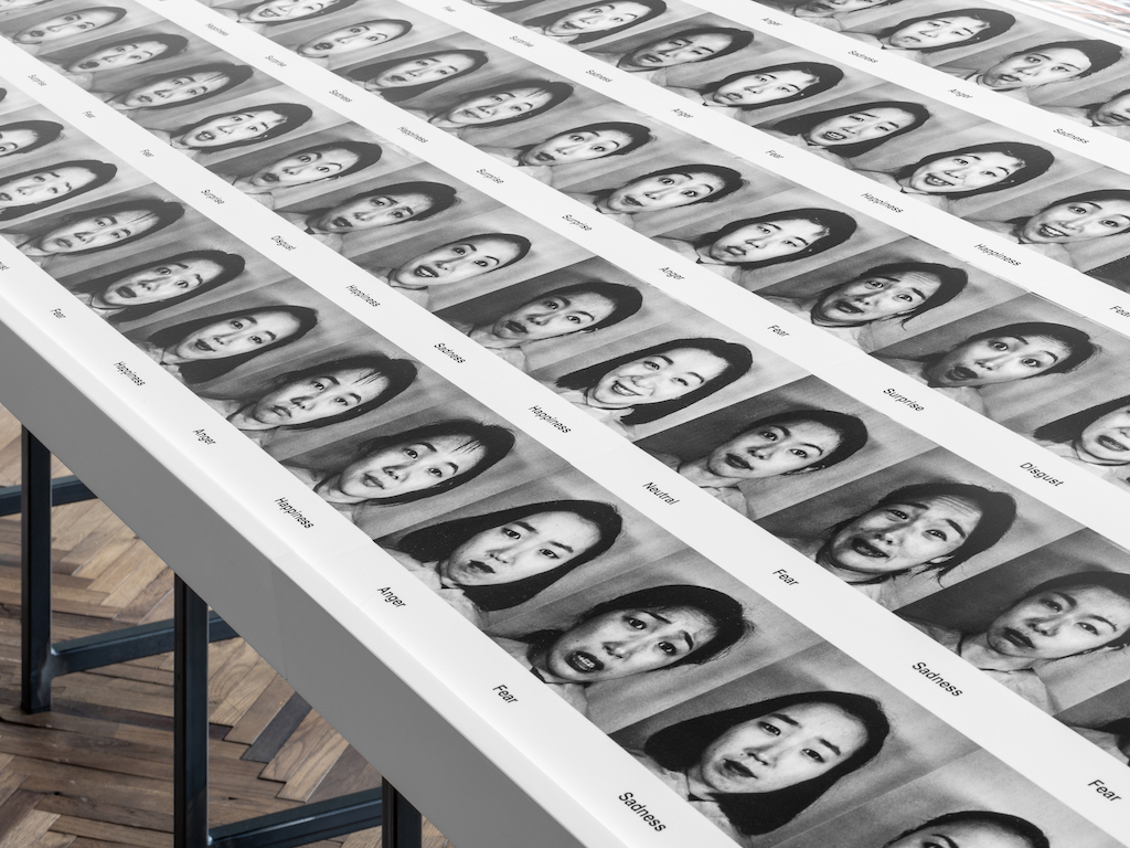 Image on top: On the table : UTKFaces, Zhifei Zhang, Yang Song, Hairong Qi, 2017. On the wall : Selfie Dataset, Mahdi M Kalayeh, Misrak Seifu, Wesna LaLanne, and Mubarak Shah, 2015. Exhibition view of Kate Crawford | Trevor Paglen: Training Humans, Osservatorio Fondazione Prada. Photo : Marco Cappelletti. Courtesy Fondazione Prada.