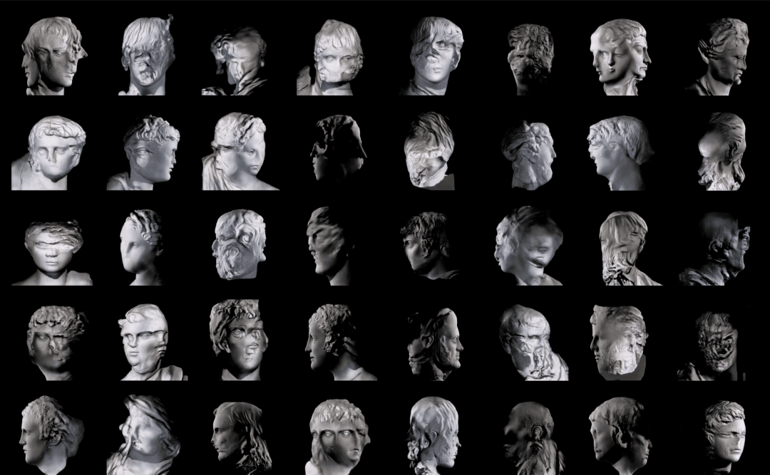 En écrivant leurs propres codes et en transformant leurs propres espaces latents (ou imaginaires vectoriels (10)), des artistes tels qu’Egor Kraft, Theopisti Stylianou-Lambert, Alexia Achilleos et Nouf Aljowaysir créent des histoires nouvelles et synthétiques afin de corriger les apories et les préjugés du passé. Content Aware Studies de Kraft (2018-en cours) utilise des modèles d’IA pour combler les traces manquantes du passé, soit en reconstruisant des antiquités endommagées, soit en synthétisant des reliefs alternatifs en basse résolution qui, en réalité, n’ont jamais existé.