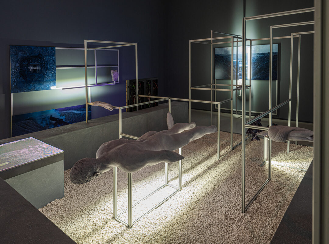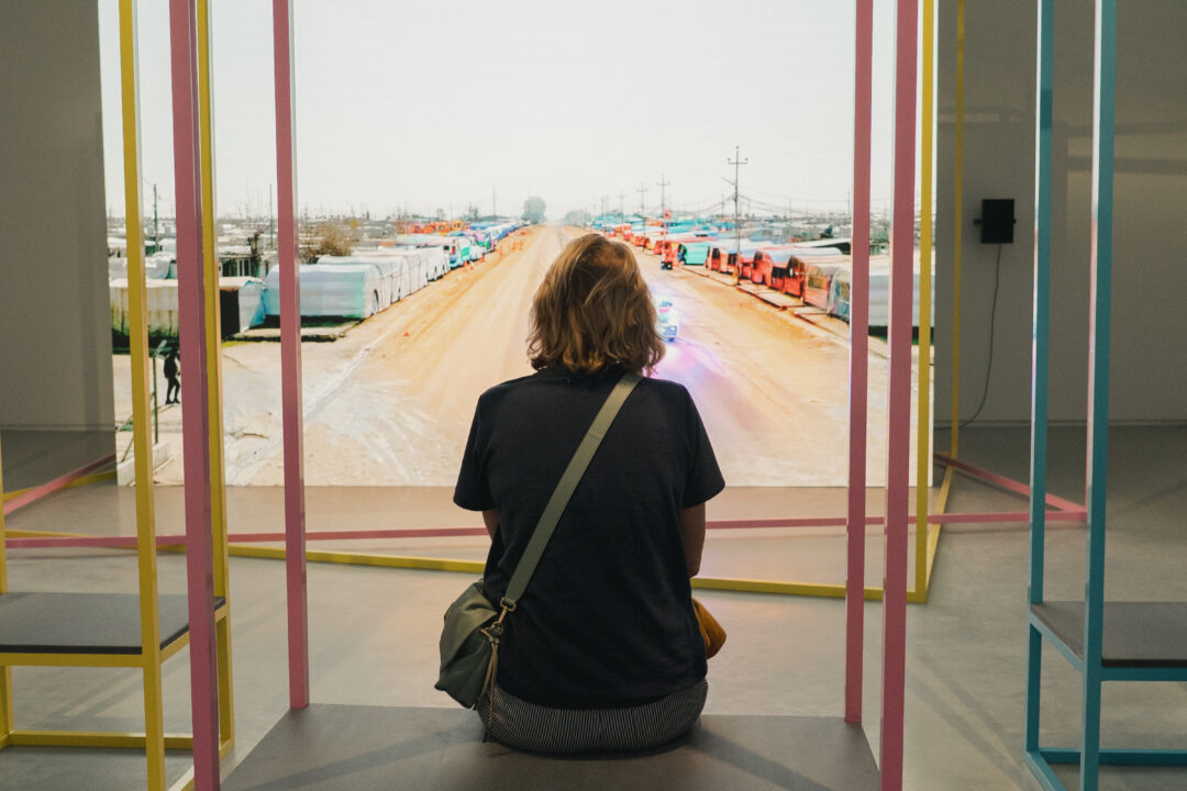 Dans le capitalisme cognitif, le cerveau et l’esprit sont les nouvelles usines du xxie siècle. Le prolétariat, travaillant à la chaîne pour créer des objets et des objets en tout genre, a été remplacé par le cognitariat, ou travail intellectuel, qui interagit avec l’univers spécialisé que l’écran révèle pour produire des données. Ces données permettent non seulement de créer des profils de consommateurs et de proposer des recommandations d’achat prédictives, favorisant ainsi la fidélité à une marque et une expérience améliorée, mais elles peuvent également avoir des effets plus insidieux. Récemment, un nouveau type de cognitariat a fait son apparition sur le marché du travail. Il s’agit de microtravailleurs, ou travailleurs du clic, qui, depuis des camps de réfugiés du Sud global et contre quelques centimes, créent ce qu’Ulises A. Mejias et Nick Couldry appellent le « colonialisme des données (1) ». Avec Mechanical Kurds (2025) de Hito Steyerl, œuvre produite spécialement pour cette exposition, les données collectées auprès de ces travailleurs dans les camps de réfugiés kurdes sont utilisées pour construire un ensemble de données ciblant des systèmes de vision artificielle qui finissent par être intégrés dans des algorithmes utilisés pour guider des attaques de drones contre ces réfugiés eux-mêmes. Dans cette installation, les spectateurs s’assoient dans des structures qui ressemblent à des boîtes de délimitation, que ces microtravailleurs utilisent pour leurs tâches de clics, ce qui suggère que nous sommes tous des travailleurs numériques participant à l’économie des petits boulots, que nous en soyons conscients ou non.