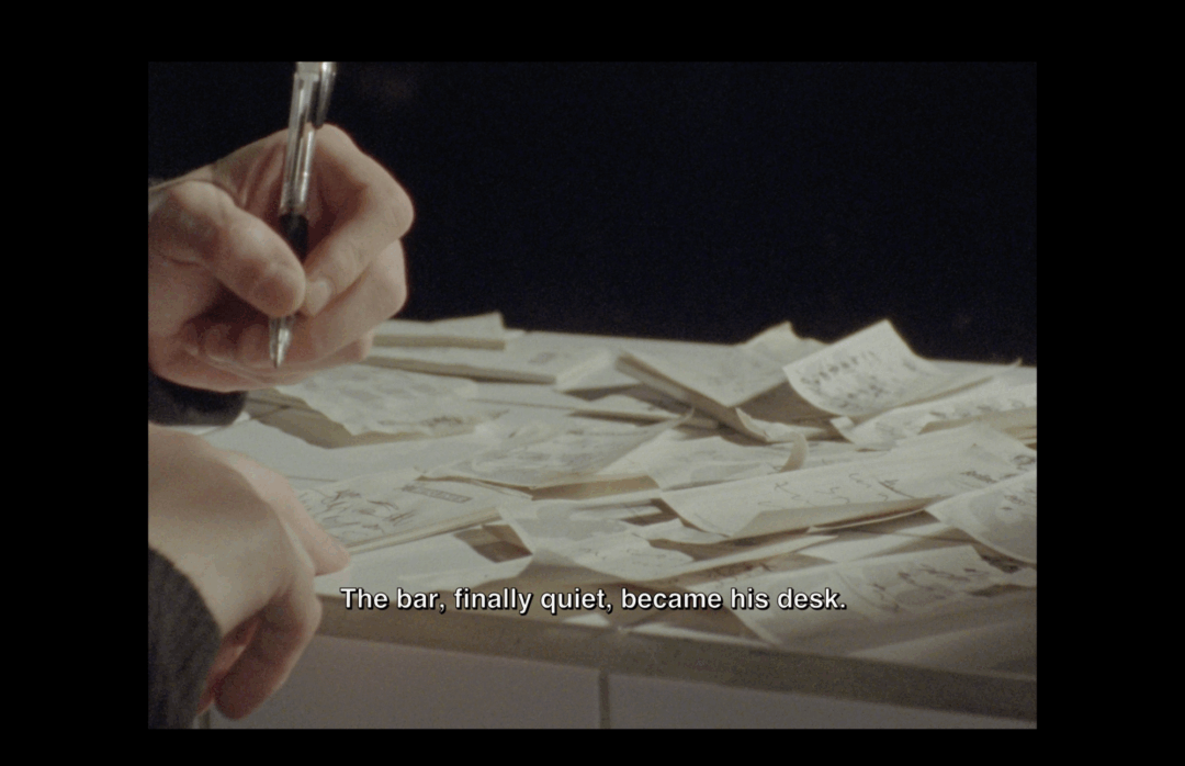 Nous avons réalisé que les livres d’additions ressemblaient aux Kammerspiel ou théâtres de chambre – une forme de pièce de théâtre allemande intimiste –, car ils étaient proches d’une sitcom : tous·tes les personnages réapparaissaient et tous·tes étaient enfermé·es dans une boîte, pleine d’alcool. Chaque nuit était son propre drame. Les livres d’additions ont fourni l’ébauche des scripts que nous allions bientôt écrire ; après tout, le bar est une scène de théâtre idéale. Nous étions derrière le comptoir chaque nuit, et nous savions que nous y livrions une performance. Tout le monde faisait le show. La scène se dérobait en permanence. Nous avons pris ces idées et nous les avons mises en application en ouvrant un théâtre [New Theater] un an plus tard.