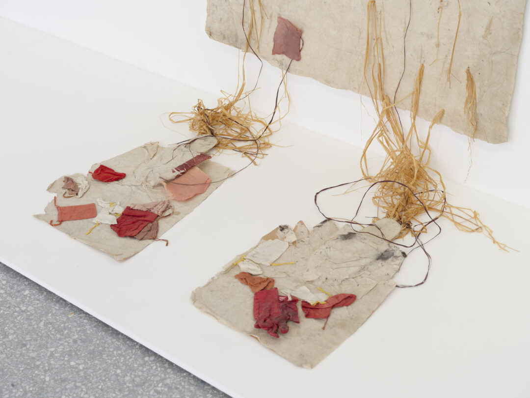 Alison Knowles, Broken Line with Slippers, 1983 (détail). Vue de l’exposition Une rétrospective. MAMC+, 2025