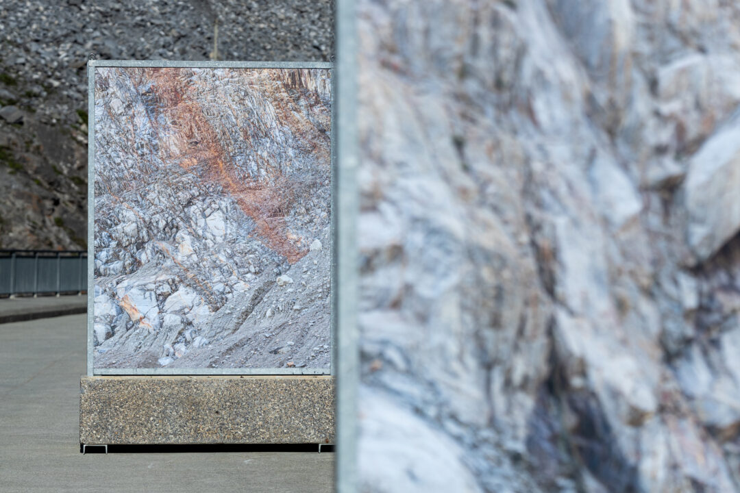 Head image : Vue de l’exposition / Exhibition view of Camille Llobet, « Glacier noir » (détails), barrage de Mauvoisin, Musée de Bagnes, 2025. © Studio Bonnardot.