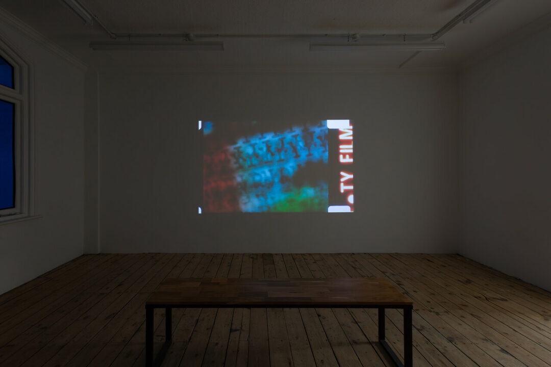 Dans une veine plus avant-gardiste, la galerie bruxelloise Jan Mot invitée par TINA montre pour la première fois au Royaume Uni une vidéo récemment redécouverte par Tris Vonna-Michell. To ray the rays est le fruit de la proximité de ses protagonistes E.E. Vonna-Mitchell et Henri Chopin, qui tous deux impliqués dans les sphères de la poésie concrètes et tous deux partageant des activités de productions contre-culturelles respectives—Chopin essentiellement avec la revue OU et Vonna-Mitchell avec le label Balsam Flex—donne, en 1985, lieu à une vidéo symptomatique des expérimentations poétiques de cette période. Sur un cycle d’une dizaine de minutes, les lettres dactylographiées du titre tremblent et défilent les unes sur les autres laissant imaginer une composition visuelle qui cherche activement la réduction de sens. La bande-son pousse la redondance absconse : « to ray the rays » est étiré jusqu’à n’en capter qu’un écho grinçant et par effet d’épuration donne place à une forme conceptuelle sensible.