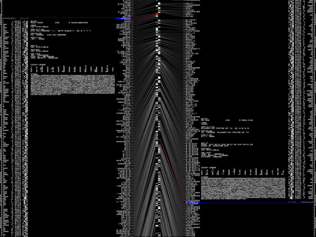 La binarité chromatique, le noir et blanc, contrainte originelle de la technologie vidéo, nous invite à l’hypnose par de forts contrastes d’intensité. Les artistes se questionnent sur la matérialité des signaux visuels et sonores, on découvre des vidéos expérimentales ou bien la lentille rétroéclairée de Karl Gerstner (Lens Picture) créant l’illusion de la déformation. L’échelle nanométrique projetée sur grand écran de Ryoji Ikeda (Data.tron) se conçoit, elle, comme une transcription des flux d’un réseau. Les technosciences imprègnent notre quotidien, l’artiste en prélève les réalités atomiques. Il matérialise le code, lui redonnant une complexité que le fantasme de la neutralité nous fait ignorer.