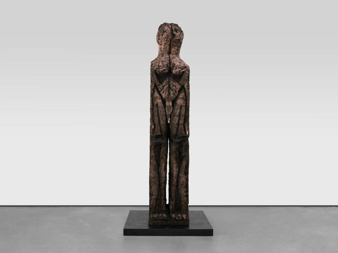 À l’instar des bâtons de danse ou de cérémonie, souvent ornés de figures anthropomorphes, elle renvoie à des traditions où la verticalité relie ciel et terre, monde physique et monde spirituel. Cette figure condense une mémoire sculpturale transhistorique, car elle rappelle également L’Ombra della sera : chef-d’œuvre étrusque de Volterra auquel Alberto Giacometti rendit hommage (par ailleurs, l’exposition coïncide avec celle au Barbican Centre de Londres, où des œuvres de l’artiste sont présentées ensemble à des sculptures de Giacometti). Malgré la finesse de sa silhouette, Distant Star remplit l’espace. Sa présence semble émettre des ondes concentriques, comme si l’œuvre était plus une question d’atmosphère que de matière.